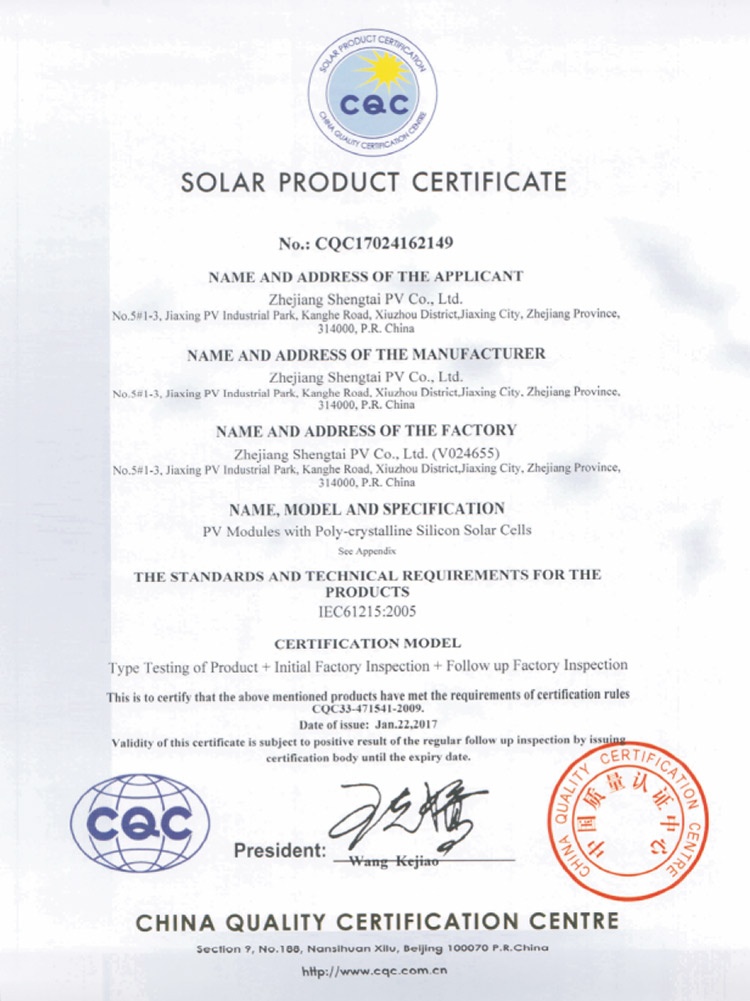 公司順利通過ISO9001質(zhì)量體系認證、產(chǎn)品通過TUV、CQC、CE、SONCAP等認證。這使得我們的產(chǎn)品遠銷于澳洲、歐美、非洲、中東、印度、巴西、墨西哥、智利、韓國及相關(guān)國家和市場,并在國內(nèi)外獲得良好的聲譽。